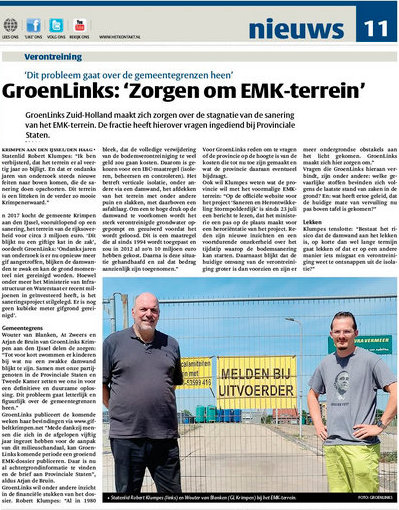 In Het Kontakt van 25 augustus: GroenLinks Zuid-Holland maakt zich zorgen over de stagnatie van de sanering van het EMK-terrein. De fractie heeft hierover vragen ingediend bij Provinciale Staten. Lees het hele artikel hier.