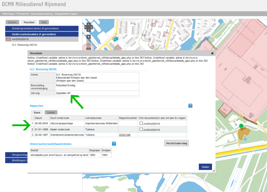 Dat is in 1987 (drie jaar na de storting) ook gedaan. Blijkbaar is men dan voldoende verontrust om een bodemonderzoek te laten doen. Dan blijken er dus inderdaad gevaarlijke stoffen in het puin te zitten. Wat daarmee tussen 1984 en 2020 gebeurd is, blijft vooralsnog een raadsel. Evenmin duidelijk is waarom voor een locatie die blijkbaar tiptop in orde is, de status nog steeds staat op “vervolg: opstellen SP”